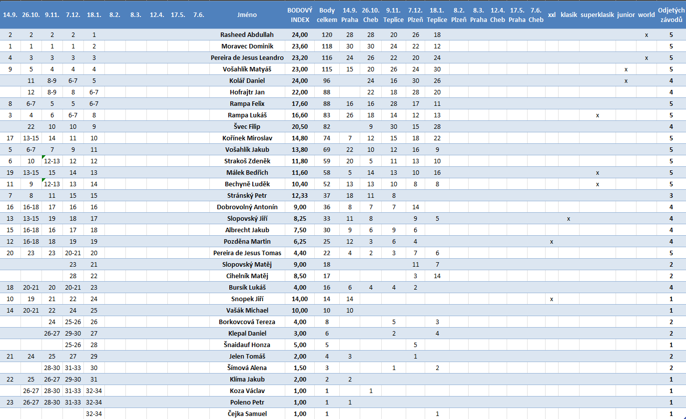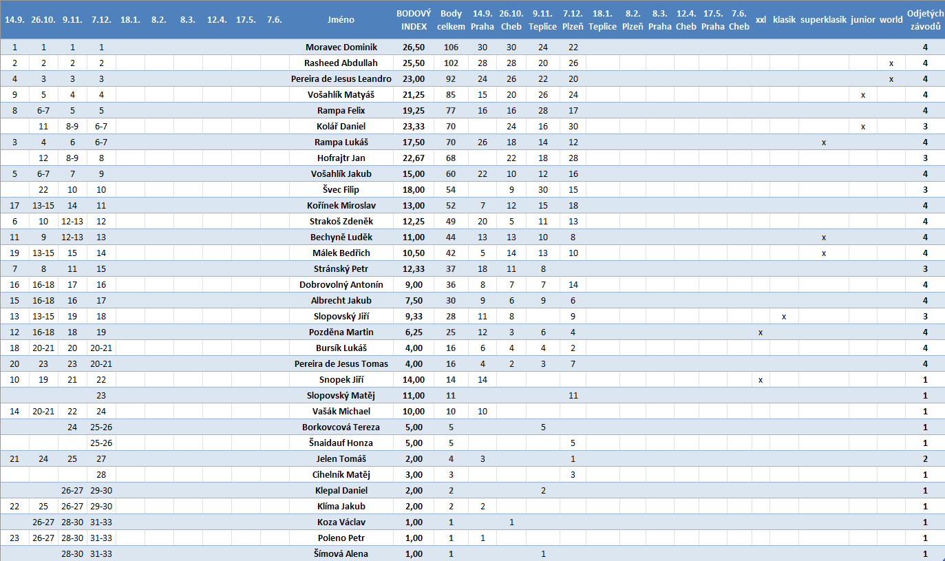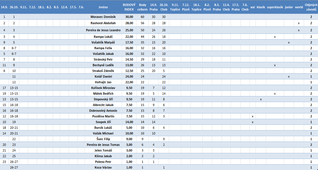 Sezóna 2025/2026 Sezóna 2024/2025 Sezóna 2023/2024 Sezóna 2022/2023 Sezóna 2020/2021 Sezóna 2019/2020 Sezóna 2018/2019 Sezóna 2017/2018 Sezóna 2016/2017 Sezóna 2015/2016 Sezóna 2014/2015 Sezóna 2013/2014 Sezóna 2012/2013 Jaro/Léto 2012 Sezóna 2011